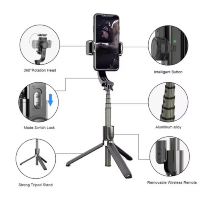 Le stabilisateur L08 est un accessoire polyvalent et innovant, conçu pour améliorer la qualité de vos photos et vidéos en offrant une stabilité optimale. Ce dispositif 3-en-1 combine un stabilisateur à axe unique, une perche à selfie extensible et un trépied intégré, le rendant idéal pour les vlogs, les diffusions en direct, les appels vidéo et les prises de vue en déplacement.