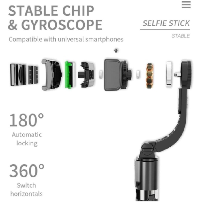 - Polyvalence 3-en-1 : Combine un stabilisateur à un axe, une perche à selfie extensible et un trépied intégré pour des prises de vue stables et variées.