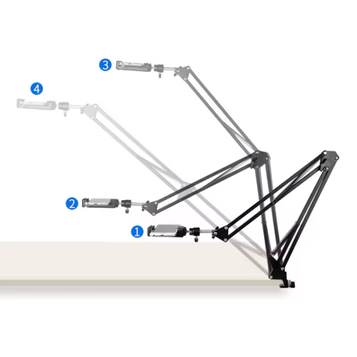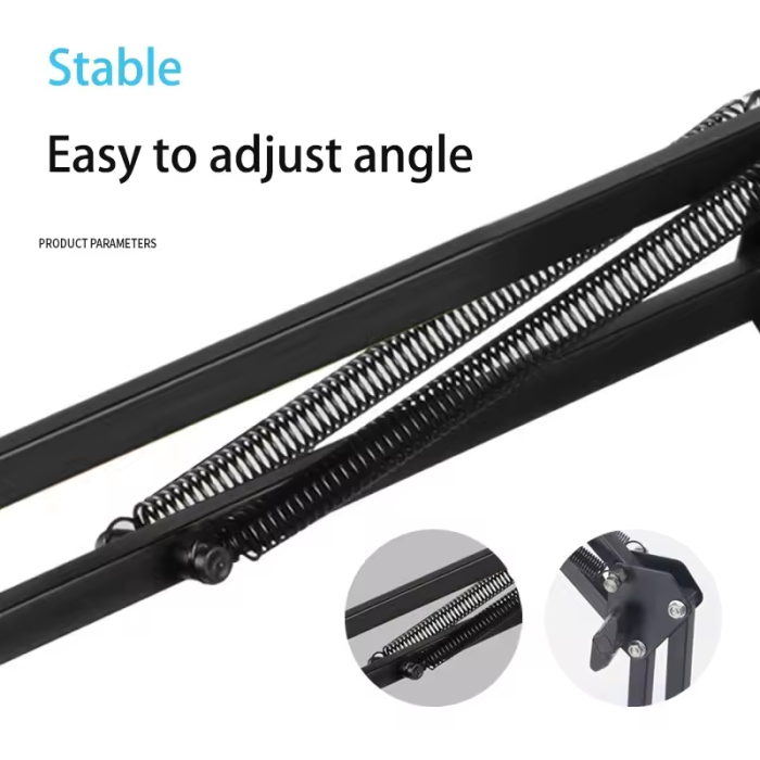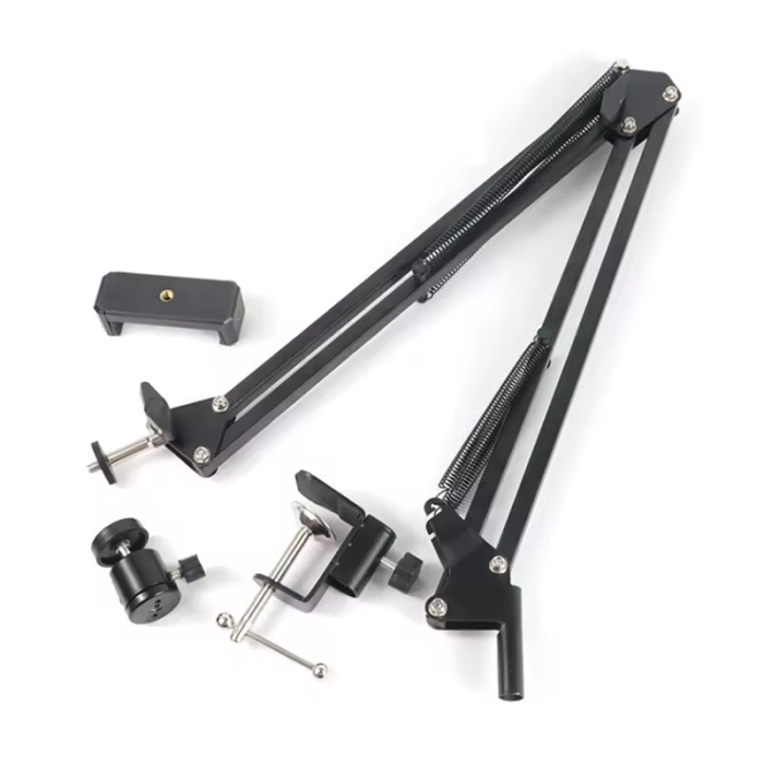 - Bras de microphone ajustable : Réglable en hauteur avec pince de fixation, parfait pour podcasts, musique et création de contenu.