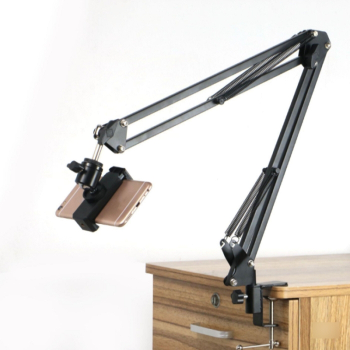 Ce support de téléphone et de microphone ajustable est conçu pour offrir une installation rapide grâce à sa fixation simple sur table ou bureau, tout en étant facile à transporter. Sa structure en aluminium robuste associée à un ABS résistant garantit une qualité supérieure, stable et durable. Compatible avec tous les smartphones et caméras, y compris les modèles iPhone, il s’adapte à de multiples usages : enregistrements vidéo, appels en ligne, photographie ou encore streaming. Offrant confort et stabilité, il assure un maintien sûr sans vibrations pour une expérience pratique et agréable. Il allie résistance et longévité. Son bras de microphone ajustable, réglable en hauteur et équipé d’une pince de fixation, en fait l’accessoire idéal pour les podcasts, la musique et la création de contenu. Enfin, son design portable, léger et compact, permet de le ranger et de l’emporter facilement partout.