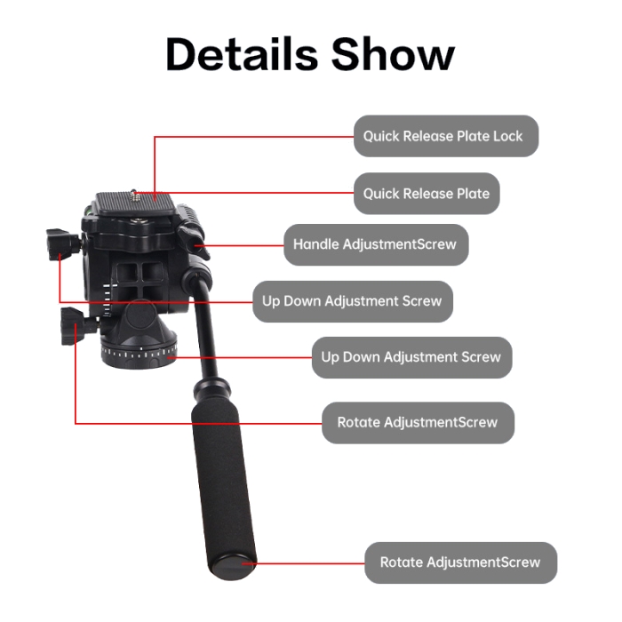 • Rotule fluide panoramique : permet des mouvements doux et précis, essentiels pour des vidéos fluides et des panoramas réussis.