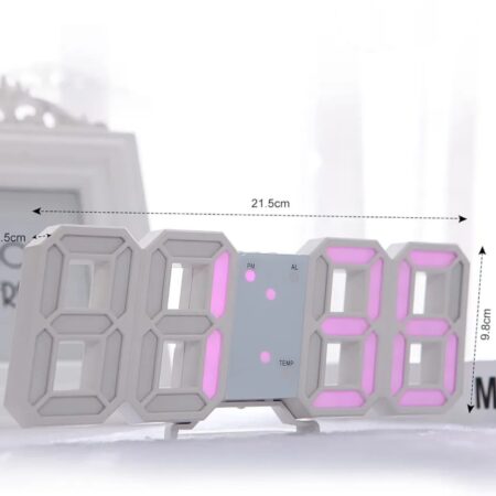 Horloge Digital Led 3D – Affichage 24 et 12 Heures – Alarme Snooze – Température – Rose