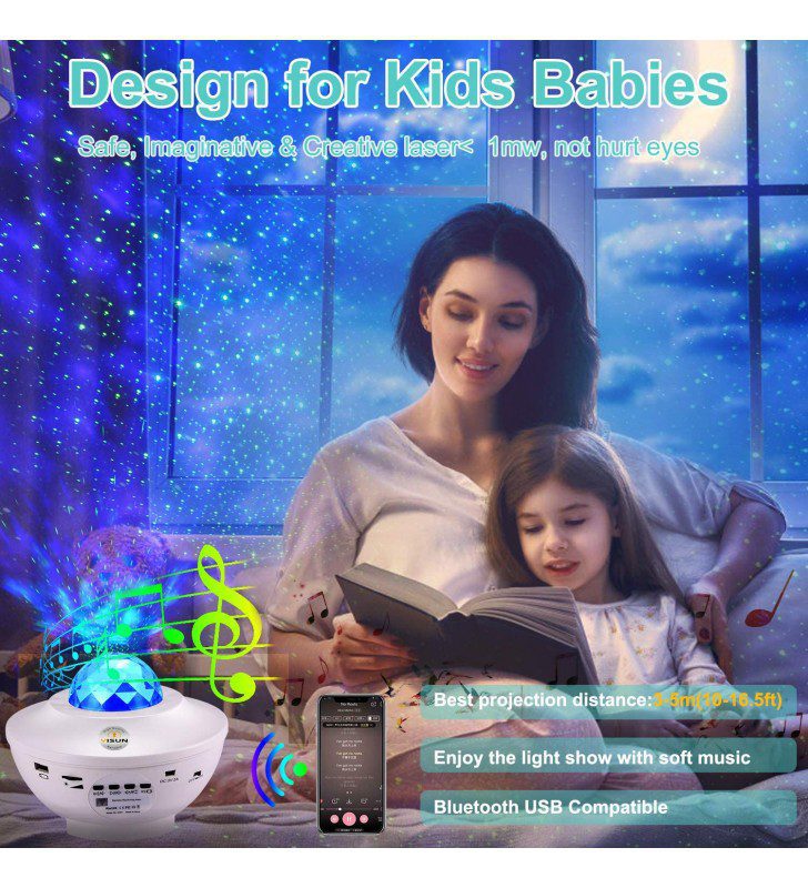Lampe Projecteur LED – Étoile projecteur – 21 Modes pour Bébé Enfant Adulte