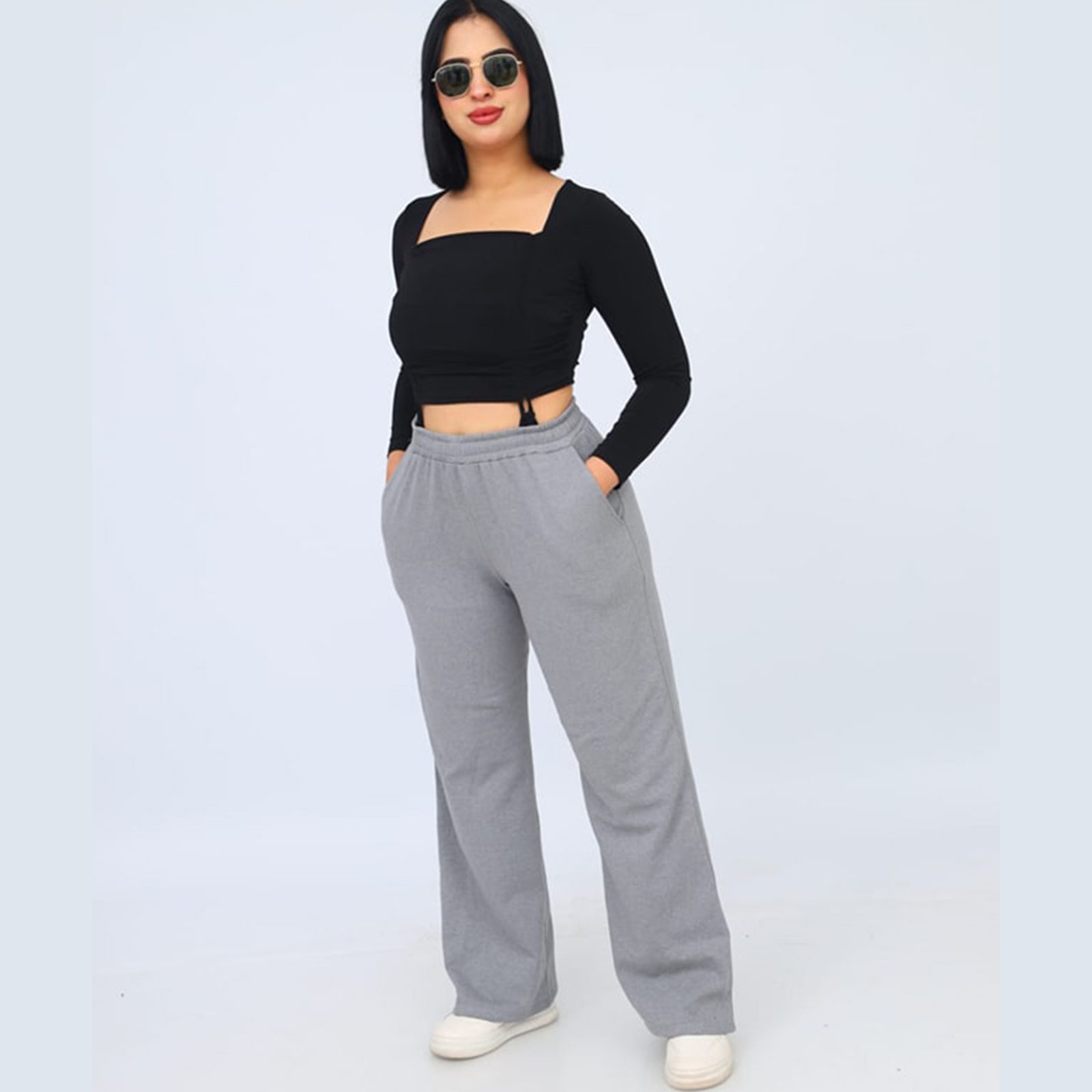 Pantalon Femme Large en Molleton Gratté – Gris Charbon