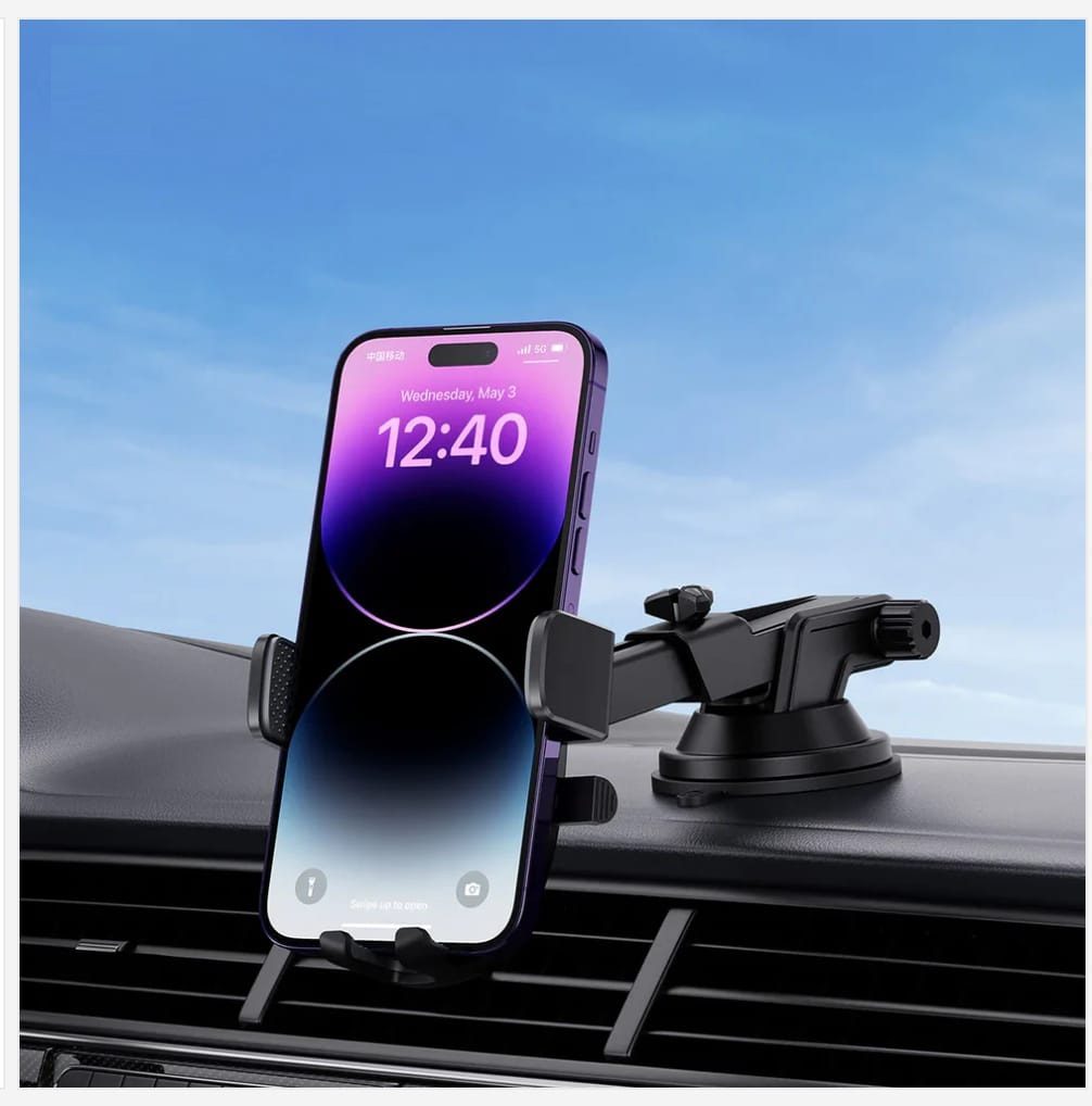 Le support de téléphone portable pour voiture, conçu pour le tableau de bord, offre une fixation stable et sécurisée, idéale pour la navigation GPS et les appels mains libres.