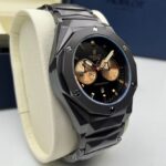 Montre Hublot Pour Homme – Bracelet En Acier Inoxydable – Résistance à l’eau – Qualité Premium – Noir et Doré